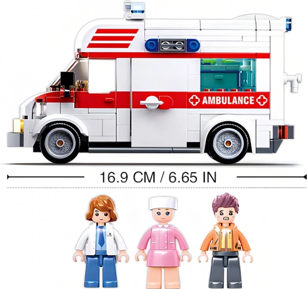 Postavte si vlastný záchranársky tím so stavebnicou Sluban Town sanitka. Sada ponúka 328 dielikov, 3 figúrky s pohyblivými časťami a jednoduchú náročnosť pre deti od 6 rokov. Sanitka s dĺžkou 16,9 cm, nosidlá a doplnky podporia kreatívne hranie a scenáre prvej pomoci. Diely sú z odolného a nezávadného ABS plastu a sú kompatibilné s LEGO, COBI a Mega Bloks.
