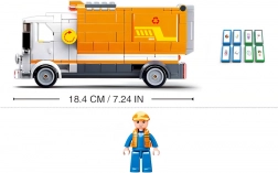 Súčasťou setu je pracovná figúrka, smetná nádoba a premyslené detaily vozidla vrátane nakladacieho mechanizmu na „zvoz odpadu“. Vďaka kompatibilite s LEGO, Cobi, Mega Bloks a ďalšími značkami môžete ľahko rozšíriť svoje mesto a vymýšľať vlastné príbehy.