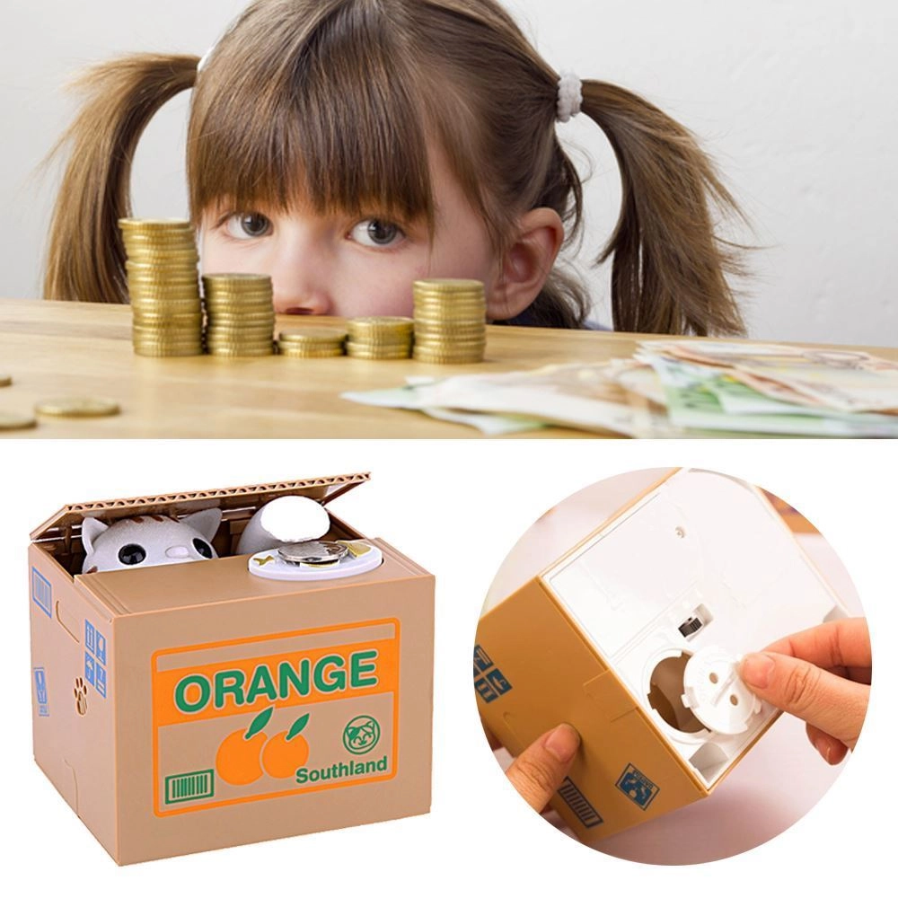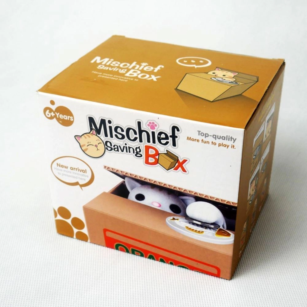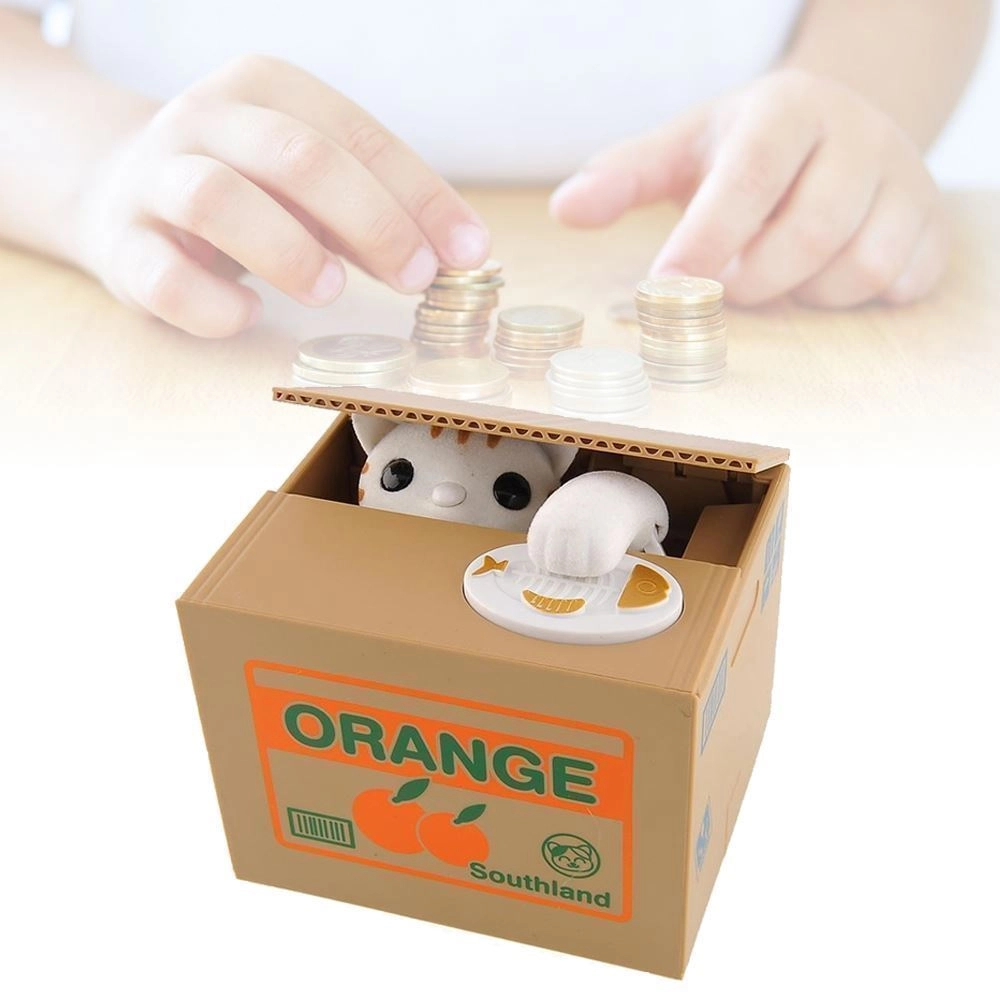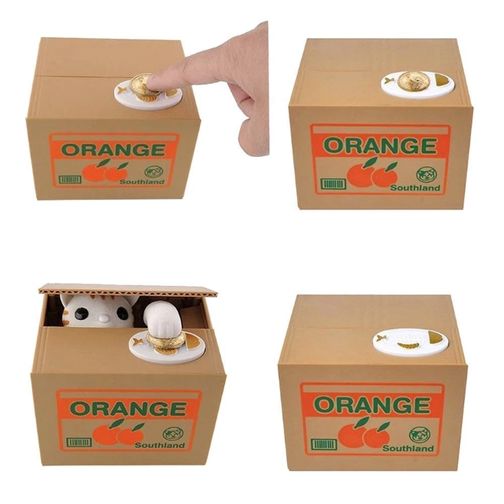 POHYBUJE SA - mačička sa vykloní z krabice, vezme mincu a schová sa dovnútra