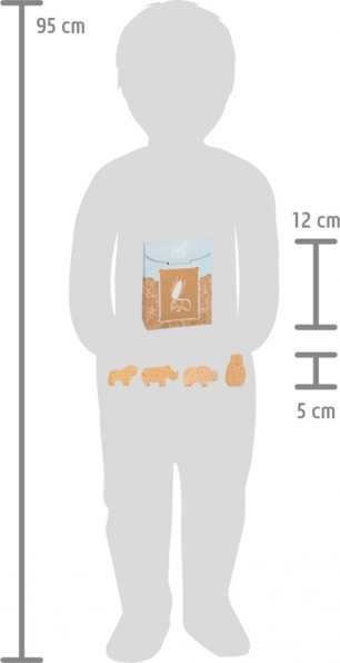 Táto kolekcia ôsmich robustných drevených sušienok dokonale napodobňuje tvary a detaily zvierat zo savany. V každom balení nájdete 2 levy, 2 opice, 2 nosorožce a 2 slony, ktorých naturalistický vzhľad určite zaujme malých dobrodruhov. Sušienky sú balené v pevnej kartónovej krabičke, ktorú ľahko otvoríte a zatvoríte, a obohatia každý detský obchodný stánok alebo kuchynku.