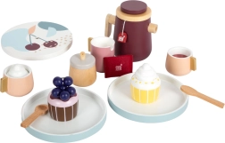 Táto čajová a kávová súprava je ideálnym doplnkom do detskej kuchynky, obohacujúc hru o nové rozmery. Obsahuje šálky, tanieriky, lyžičky, cukorničku, mliekovku, džbán a mnoho ďalších, vrátane dekoratívnych muffinov a šľahačky. Vlastnosti produktu: