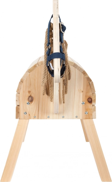 Drevený kôň je postavený na robustných nohách, ktoré zabezpečujú stabilitu a bezpečnosť pri hraní. Vďaka tejto konštrukcii je vhodný pre deti od 3 rokov.