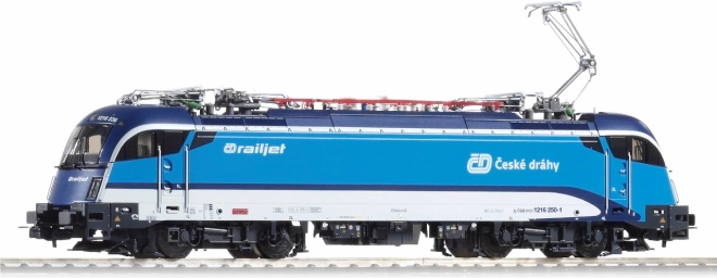 Táto presná replika ikonickej lokomotívy RH 1216 TAURUS od Siemensu v prevedení Českých dráh (éra VI) vyniká mimoriadne precíznym spracovaním detailov – od podvozku s jemne modelovaným brzdovým ústrojenstvom až po dokonale ostrú potlač s kontrastnými piktogramami. Aerodynamická karoséria je doplnená citlivo osadenými madlami, stupienkami a realistickou strechou so štvoricou pantografov.