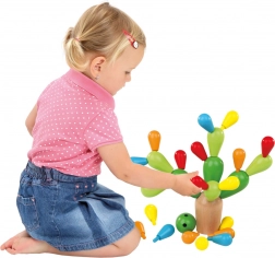 Deti skladajú farebné „výhonky“ na drevenú základňu a hľadajú rovnováhu, aby sa kaktus neprevrhol. Vďaka hladkým, oblým tvarom sa dieliky ľahko uchopujú a skladajú. Hra rozvíja trpezlivosť, plánovanie aj cit pre rovnováhu.