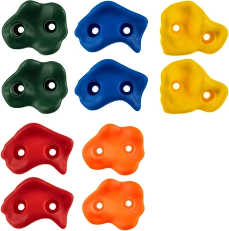 Rozšírte detské ihrisko o bezpečné a odolné lezecké chyty, ktoré motivujú k pohybu a zábave na čerstvom vzduchu. Sada 10 kusov v kontrastných farbách (červená, žltá, zelená, modrá, oranžová) uľahčuje plánovanie trás a podporuje vizuálnu orientáciu.