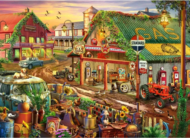 Štýlové puzzle Brain Tree s motívom vidieckej čerpacej stanice ponúknu 1000 unikátne tvarovaných dielikov, matný povrch s prvotriednou potlačou a bohaté príslušenstvo pre pohodlné skladanie. Užite si rozmanité tvary dielikov, plagát v kvalite puzzle, praktické triediace priehradky, stojan na veko aj odolné uzatvárateľné vrecko na ochranu dielikov.
