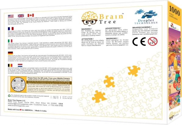 - Puzzle 1000 dielikov, plagát 52 × 30 cm, kartónové triediace priehradky, stojan na veko krabice, uzatvárateľné vrecko