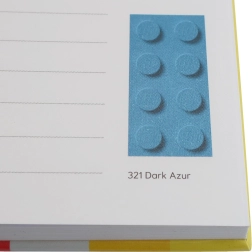 Každá linajkovaná stránka obsahuje ilustráciu dielika v konkrétnom odtieni LEGO, ktorá spríjemní písanie a podporí kreativitu.