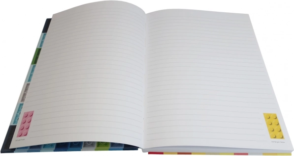 Štýlový poznámkový blok LEGO v praktickom formáte A5 prináša 144 linajkovaných strán s motívmi originálneho vzorkovníka farieb LEGO. Pevné dosky z recyklovaného kartónu s certifikáciou FSC majú efektnú ražbu kociek, takže zápisník ľahko rozoznáte aj hmatom. Ideálny na každodenné poznámky, plánovanie aj kreatívne nápady.