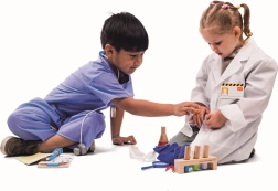 - Zmierňuje strach z lekára vďaka prirodzenému zoznamovaniu s pomôckami.