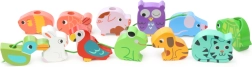 Korálky zobrazujú rôzne zvieracie tvary ako žaba, prasiatko alebo ryba, ktoré lákajú deti k hre.