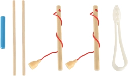 - 1× podstava, 2× prút, 2× paličky, 4× silikónová miska, 10× drevená gulička, 12× rybička, 17× húsenica, 1× hracia kocka, 16× figúrka v 4 farbách, 1× pinzeta