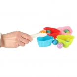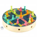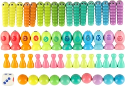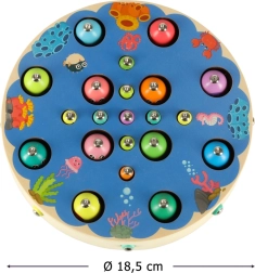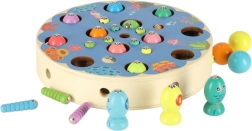 Vďaka veľkému množstvu dielikov je hra ideálna aj pre viac detí súčasne – jedno loví rybičky, druhé zbiera húsenice a ďalšie triedi guličky do silikónových misiek. Bezpečné materiály a hladko brúsené drevo zaisťujú pohodlné a bezstarostné hranie.