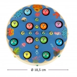 Múdra Montessori hra pre najmenších, ktorá spája zábavu a učenie. Deti si pri lovení rybičiek na magnet, prenášaní prvkov pinzetou a triedení podľa farieb rozvíjajú jemnú motoriku, koordináciu oko–ruka, logické myslenie aj počtové zručnosti. Farebné drevené prvky a bohatá sada príslušenstva nabádajú k samostatnej aj spoločnej hre.
