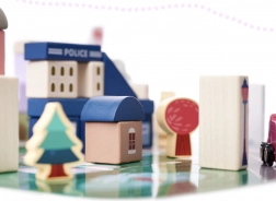 Herná podložka s rozložením mesta podporuje rolové hry a ľahko prenosné puzzle cesty dopĺňajú celé herné prostredie.