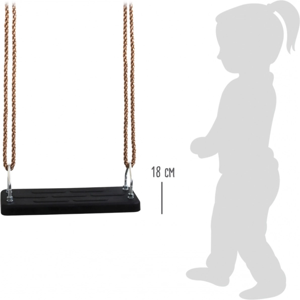 Táto univerzálna vonkajšia hojdačka SMALL FOOT je navrhnutá pre každodennú radosť z pohybu na záhrade aj na detskom ihrisku. Tuhé gumené sedadlo s rozmermi 45 × 18 cm je pohodlné, stabilné a vďaka svojej textúre nešmýka, takže poskytuje istotu pri hojdání.