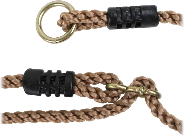 Silné, poddajné laná z odolného materiálu sú zakončené kovovými krúžkami pre jednoduché zavesenie. Pomocou kovových prievlakov rýchlo upravíte dĺžku až do 180 cm, aby hojdačka perfektne sedela rôznym výškam zavesenia. Maximálna nosnosť 100 kg zaisťuje dlhodobé a bezpečné používanie.