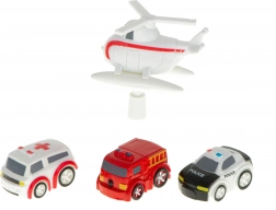 Obsahuje tri vozidlá: ambulanciu, hasičské auto a policajné vozidlo, čo umožňuje simulovať rôzne záchranné misie a dynamické scenáre.
