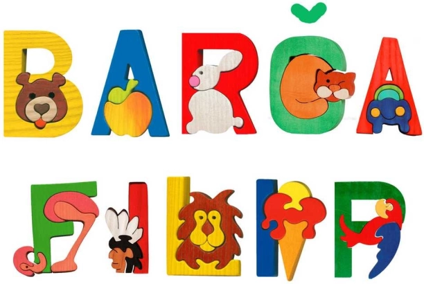 Vyrobené z masívneho dreva, ktoré zaisťuje odolnosť a dlhú životnosť. Povrch písmen je opatrený bezpečnými farbami.