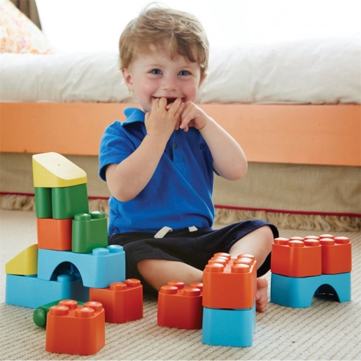 Objavte zábavu a udržateľný dizajn v jednej sade. Kocky Green Toys sú ľahké, pritom pevné a odolné, vyrobené v USA z recyklovaného plastu z fliaš od mlieka. Deti si môžu stavať hrady, veže aj vlastné fantazijné stavby bez rizika malých dielikov či ostrých hrán.