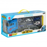 Veľký modrý kamión kombinuje funkciu úložného priestoru s možnosťou hry. Umožňuje prepravovať až 14 malých kovových autíčok, ktoré sú súčasťou balenia. Autíčka realisticky napodobňujú skutočné policajné a núdzové vozidlá. Kamión má dve strany s priehľadnými dvierkami a bezpečnostnými zámkami, čo zabezpečuje, že autíčka nevypadnú počas jazdy. Obsahuje tiež vystrelovač autíčok z prednej časti, ktorý pridáva hre ďalší rozmer.