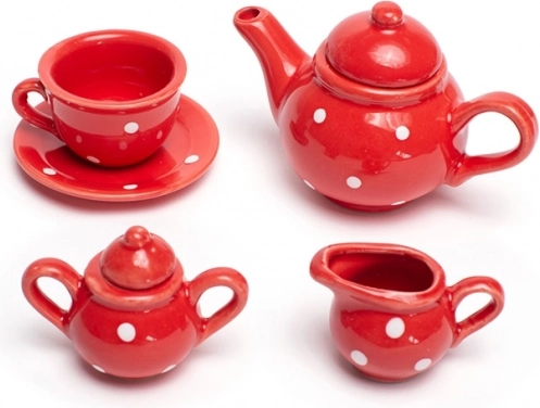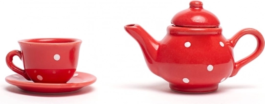 Klasická červená s bielymi bodkami zaujme na prvý pohľad a dodá každej čajovej párty čaro.