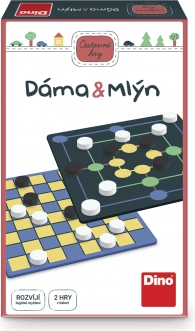 Cestovná dáma a mlyn od značky Dino je ideálnou voľbou na rodinné výlety, dovolenky aj čakanie na cestách. Obojstranný plán ľahko otočíte – z jednej strany je šachovnica 8 × 8 pre dámu, z druhej klasické rozloženie pre mlyn. Jedna sada kameňov stačí na obe hry, takže nič ďalšie nepotrebujete.