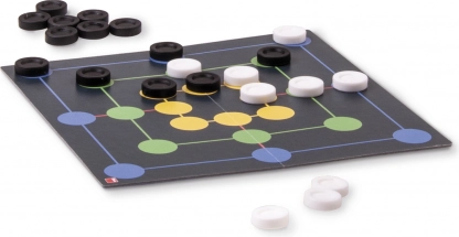 Obojstranný herný plán umožní rýchlo prepnúť medzi dámou a mlynom. Jedna sada kameňov stačí pre obe hry, takže hneď môžete začať hrať.