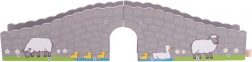 Navrhnutý v šedej farbe, pripomínajúci kamenný most s ilustráciou farmárskych zvieratiek pre autentický zážitok.