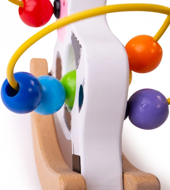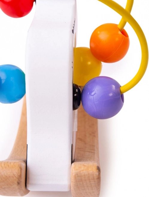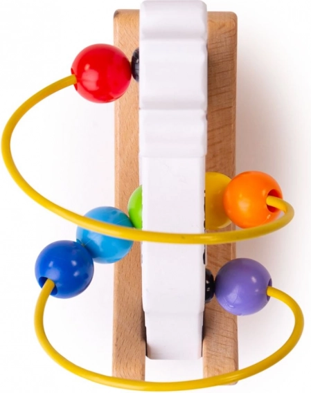 Vďaka pevnej drevenej základni a hladkým hranám je hračka odolná a príjemná na dotyk. Farebné koráliky stimulujú zmysly a podporujú rozpoznávanie farieb. Ideálna do detskej izby aj ako cestovná aktivita.