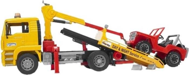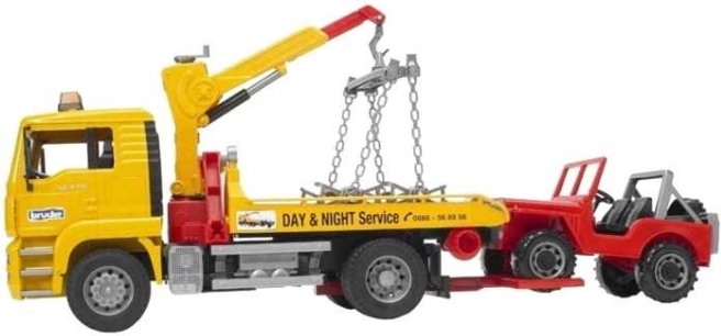 Bruder odťahové vozidlo MAN je ideálna hračka pre deti, ktoré milujú simulácie a hranie sa s realistickými modelmi áut. Vozidlo ponúka sklápaciu kabínu, ktorá umožňuje nahliadnuť do motorového priestoru, a je vybavené predným sklom z odolného polykarbonátu. Za kabínou sa nachádza otočné manipulačné rameno s reťazami pre jednoduchú manipuláciu s Jeepom.