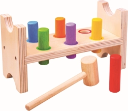 Zábavná a bezpečná drevená zatĺkačka pre najmenších rozvíja koordináciu ruka–oko a jemnú motoriku. Vďaka pestrofarebným kolíkom a robustnému drevenému kladivku deti trénujú presnosť aj silu úchopu. Hračka má zaoblené hrany, je vyrobená z kvalitného dreva a spĺňa európske bezpečnostné normy.