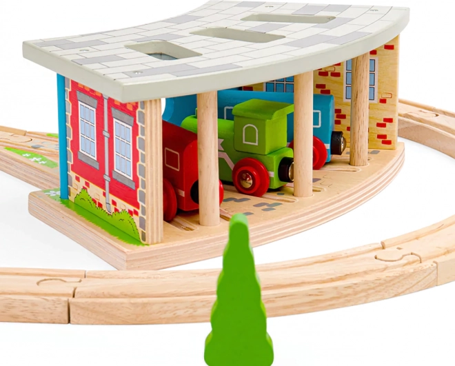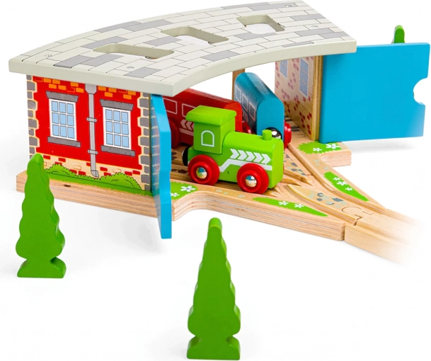 Depo je plne kompatibilné s väčšinou bežných drevených systémov, takže ho ľahko zapojíte do existujúceho sveta koľají. Hra s depom rozvíja predstavivosť, jemnú motoriku aj koordináciu.