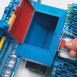 Zásobník možno naplniť pieskom či iným sypkým materiálom a jedným pohybom páčky ho opäť vyprázdniť – ideálne pre realistickú hru.
