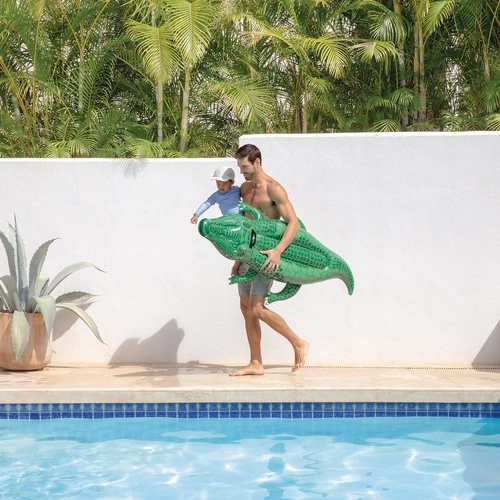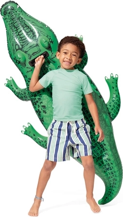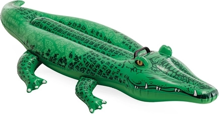 Nafukovací krokodíl INTEX pre deti 3+. Odolné PVC, pevný úchyt, nosnosť 40 kg, rozmery 168×86 cm. Skvelá zábava do bazéna, k jazeru aj na pláž.