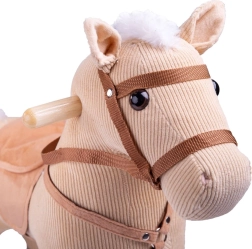 Béžový hojdací kôň je navrhnutý tak, aby deťom poskytol bezpečnú a pohodlnú jazdu. Mäkké sedlo a uzdička z jemného manšestru lákajú k dotyku a hra tak rozvíja nielen predstavivosť, ale aj motorické zručnosti. Robustná drevená základňa zaisťuje isté hojdanie bez neželaného kývania.