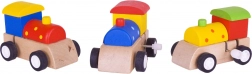Mašinky sú dostupné v troch výrazných farebných variantoch, ktoré podnecujú detskú fantáziu a podporujú rozvoj ich vnímania farieb.