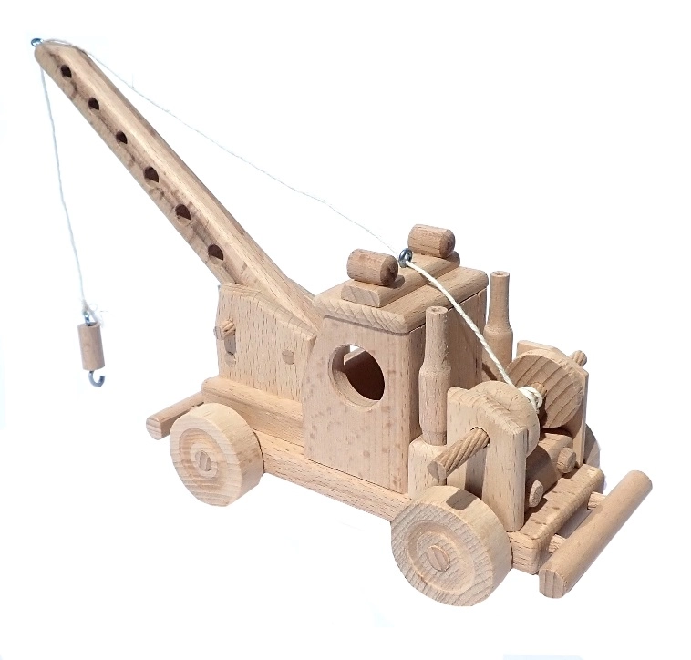Žeriav je vybavený funkčným ramenom a háčikom na šnúrke na zdvíhanie drobných predmetov – ideálne na rozvoj fantázie a jemnej motoriky.
