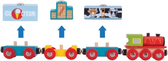 Rozšírte svoju drevenú vláčikodráhu o štýlový nákladný vlak s tovarom a praktickou sadou koľají. Súčasťou balenia sú 2 stredné koľaje a 1 koncová koľaj na rýchle napojenie na existujúcu trať. Magnetické spojky zabezpečia jednoduché prepojenie vagónikov aj s ďalšími súpravami.