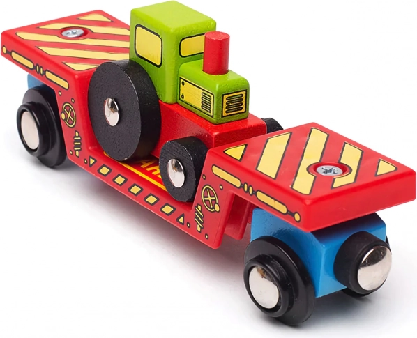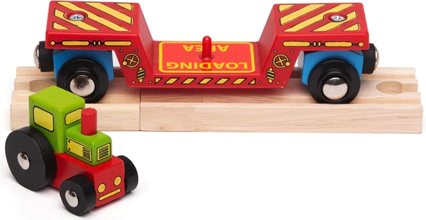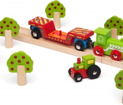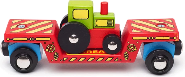 Tento farebný set prináša do detského sveta železnice ešte viac fantázie. Traktor možno z vagónika zložiť a použiť v hre na farmu, alebo ho pomocou nakladacej plochy naložiť a vypraviť na cestu po koľajniciach. Vďaka magnetickým spojkám sa vagónik rýchlo spojí s lokomotívou aj ďalšími vozňami, takže rozšírenie existujúcej súpravy je otázkou chvíľky.