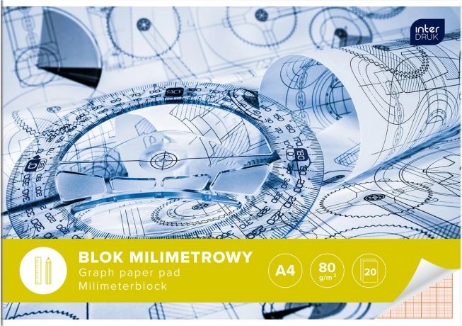 Praktický blok milimetrového papiera vo formáte A4 od INTERDRUK je ideálny na technické kreslenie, diagramy a grafy. Jemná milimetrová mriežka umožňuje precíznu prácu, gramáž 80 g/m² zaisťuje odolnosť a 20 listov s pevnou lepenou väzbou a silnou lepenkovou podložkou poskytne stabilný podklad aj bez stola. Obálka z kriedového papiera je v rôznych dizajnoch dodávaných náhodne.