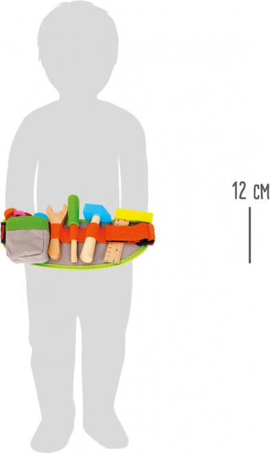 Nastaviteľný pás na náradie pre deti od značky Small Foot je vybavený rôznorodým náradím pre zábavné a poučné hranie. Vďaka variabilnej dĺžke pásu (41-103 cm) si ho jednoducho prispôsobí každý malý kutil. Set obsahuje: kladivo, skrutkovač, kľúč, uholník, skrutky a matice.