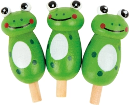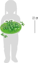 Farebná drevená doska v tvare žaby s kvetmi a chrobáčikmi motivuje k hre a podporuje predstavivosť. Vďaka prehľadnému rozloženiu otvorov sa deti ľahko zorientujú.