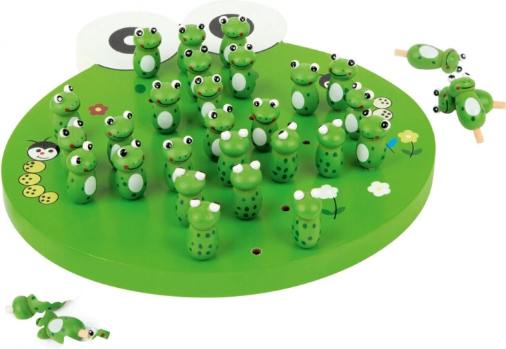 Objavte nadčasovú logickú hru v hravom žabom kabátiku. Drevený Solitér od small foot ponúka jednoduché pravidlá a nekonečné možnosti riešení. Každým preskočením odoberiete jednu žabku, až zostane ideálne len jediná. Skvelý spôsob, ako rozvíjať trpezlivosť, sústredenie a strategické uvažovanie.