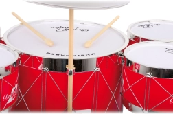 Rozbehnite domáce koncerty so štýlovou detskou bicíou súpravou SMALL FOOT v ohnivom červenom prevedení. Sada z kvalitného dreva a kovu obsahuje 5 bubnov, činél, stojan a 2 paličky. Robustná konštrukcia podporuje rozvoj rytmu, koordinácie a jemnej motoriky detí od 3 rokov.