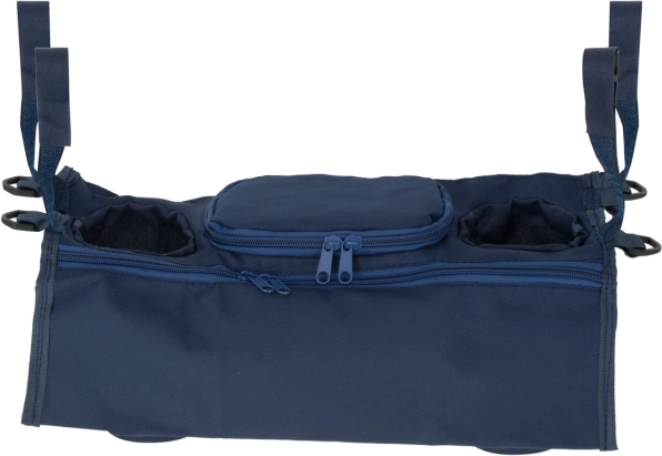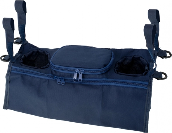 Praktický organizér na kočík s dvoma držiakmi na fľaše, priestranným vreckom na zips a menším vreckom na zips. Ľahko sa upevňuje pomocou pások na suchý zips a udrží všetky nevyhnutnosti poruke – od plienok a obrúskov po hračky, telefón a fľašu s mliekom či nápojom.