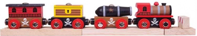 Pirátsky vlak od Bigjigs Rail je ideálnou voľbou pre malých dobrodruhov. Táto sada obsahuje lokomotívu a tri detailne spracované vagónky s klasickým magnetickým spájaním. Kompatibilný so všetkými drevenými železničnými systémami.