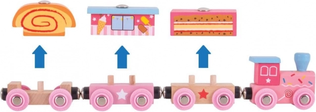 Roztomilý drevený vláčik v ružových farbách nadchne všetkých malých rušňovodičov. Súprava obsahuje lokomotívu a tri detailne spracované vagóniky s magnetickým spájaním, je plne kompatibilná s väčšinou drevených vláčkodráh a v balení nájdete navyše 3 kusy koľají na rozšírenie trate.