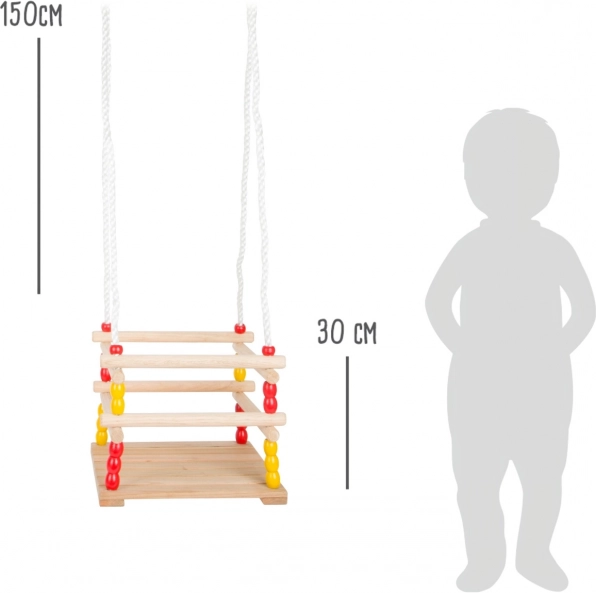 Táto drevená hojdačka SMALL FOOT je navrhnutá pre pohodlné a bezpečné hojdanie menších detí. Ochranné ohradenie poskytuje oporu pri sedení aj držaní, pevné laná s kovovými prieťahmi umožňujú rýchle nastavenie dĺžky a odolné kovové krúžky zabezpečujú jednoduché zavesenie. Precízne opracované masívne drevo dodáva hojdačke dlhú životnosť a prírodný vzhľad.