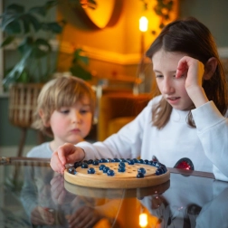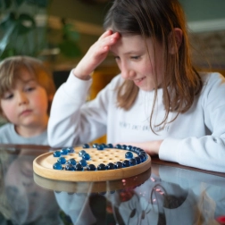 Vďaka kvalitnému spracovaniu z udržateľných materiálov je hra odolná a príjemná na dotyk. Je skvelá na tiché hranie, rozvoj sústredenia a plánovania krokov – a zároveň krásne vyzerá v detskej izbe či obývačke.